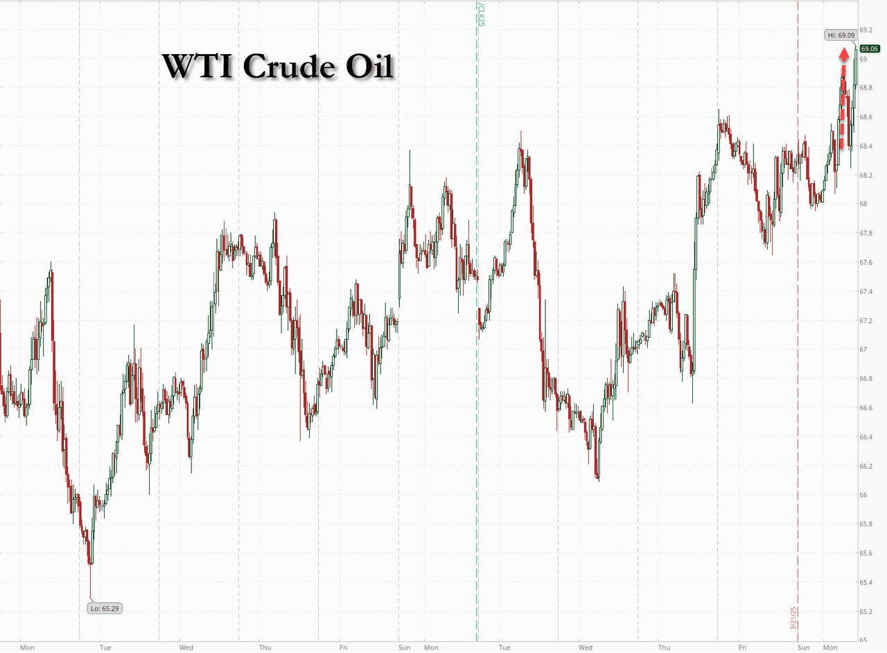 Needless to say, the news sent oil immediately higher in Monday trade.