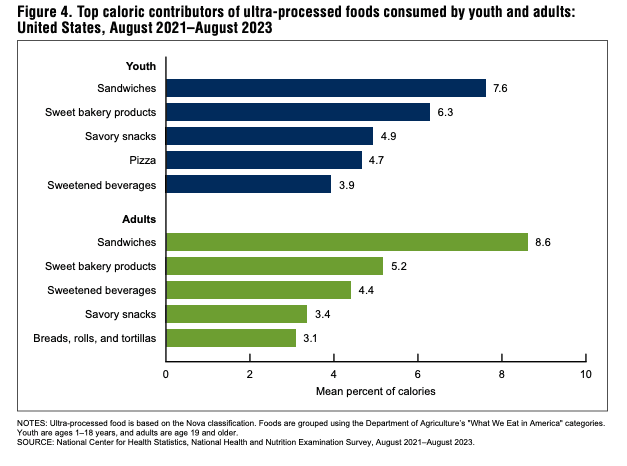 Here are the highlights from the CDC's new report titled "Ultra-processed Food Consumption in Youth and Adults: United States, August 2021–August 2023":