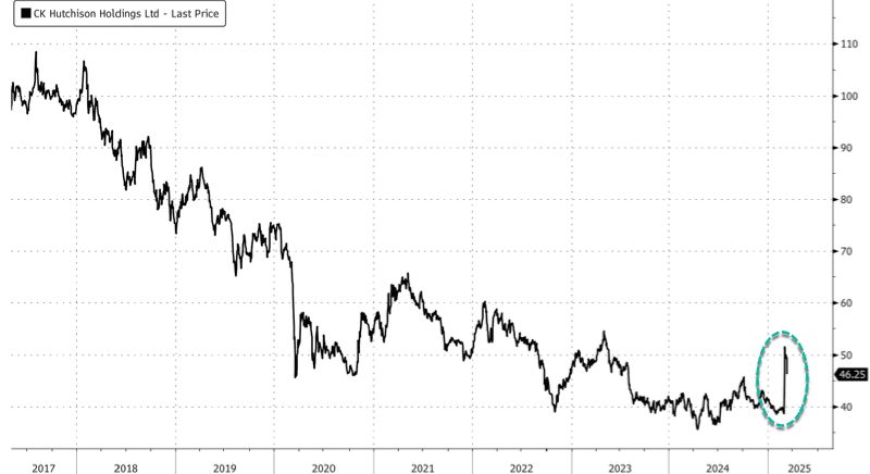 CK Hutchison's market capitalization has only increased by $5 billion following last week's initial news release—just a fraction of the $19 billion the firm is expected to receive when the port deal is completed.