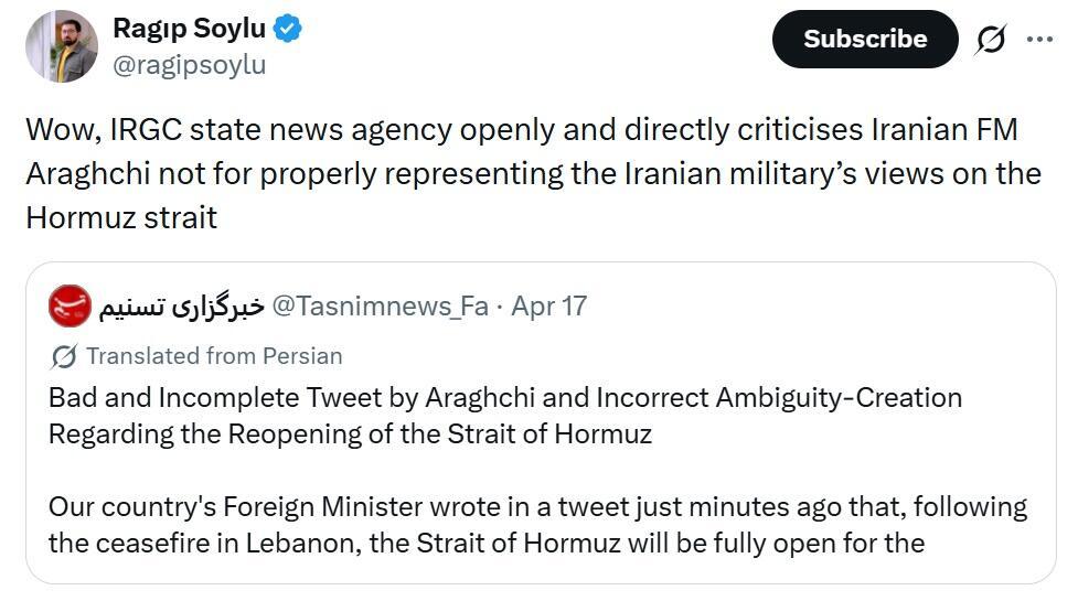 - Whether the Strait is open or closed and the regulations governing it will be determined by the field, not by social media.