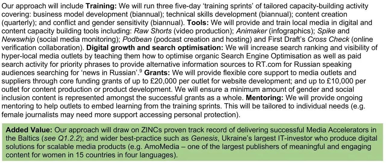 The contractor hoped to assist the outlet in creating more online games, “the aim [being] to create content which is good enough to have a pull effect amongst Russian-speaking youth” in Moscow’s near abroad. Ultimately, the aim was to create “satirical games” which would demonstrate the superiority of Western European culture over Russia’s, or as (they put it) that “the offer of a fairer, respectful, and caring society is better than that of an arrogant, nationalistic regime.”