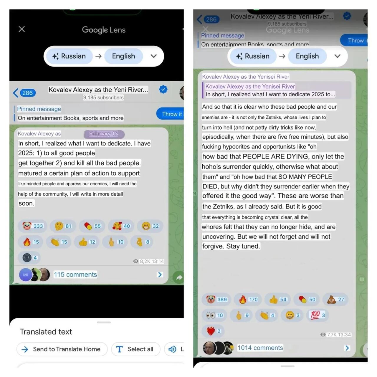 In a widely ridiculed Telegram post on February 13, 2025, Kovalev declared that one of his goals for 2025 was to “kill all the bad people… and oppress our enemies,” declaring, “I will need the help of the community.”