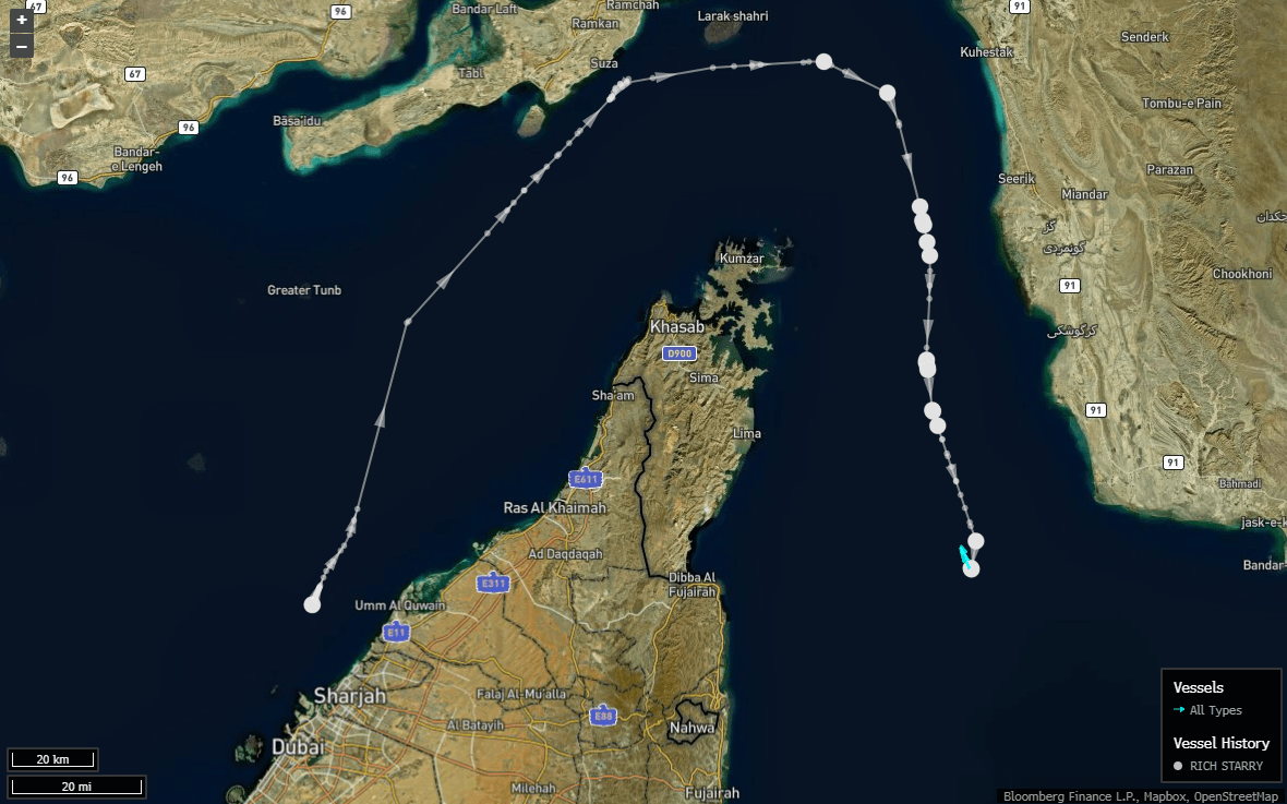 Chinese ship testing America's Hormuz blockade appears to U-turn: Rich Starry was blacklisted by Washington in 2023 for helping Tehran evade energy sanctions.