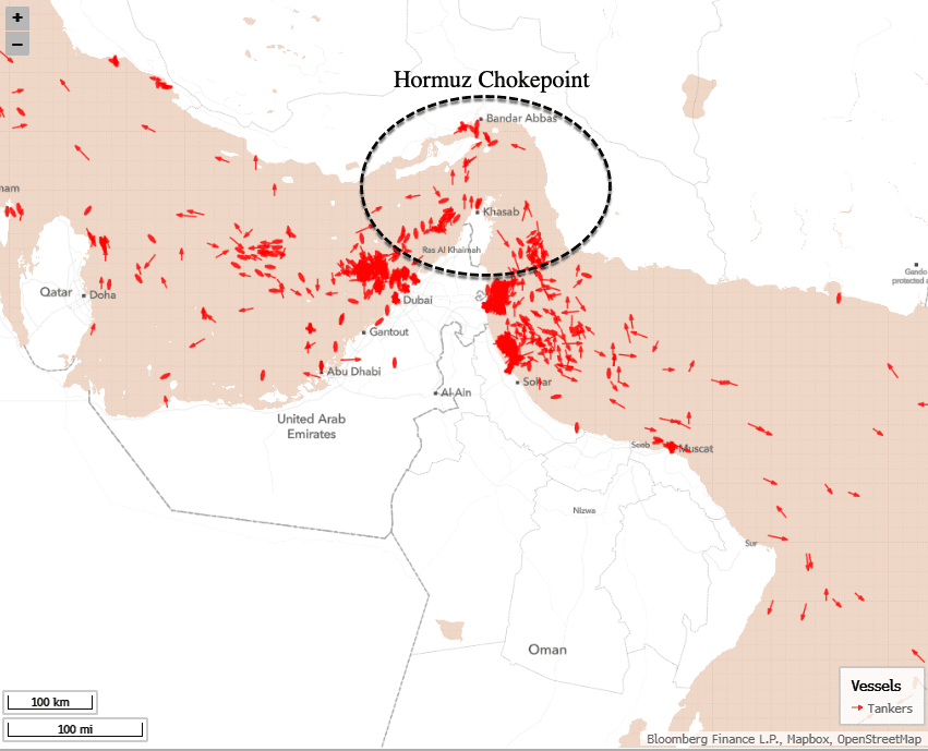 Current snapshot of the waterway via Bloomberg ship-tracking data of tankers: