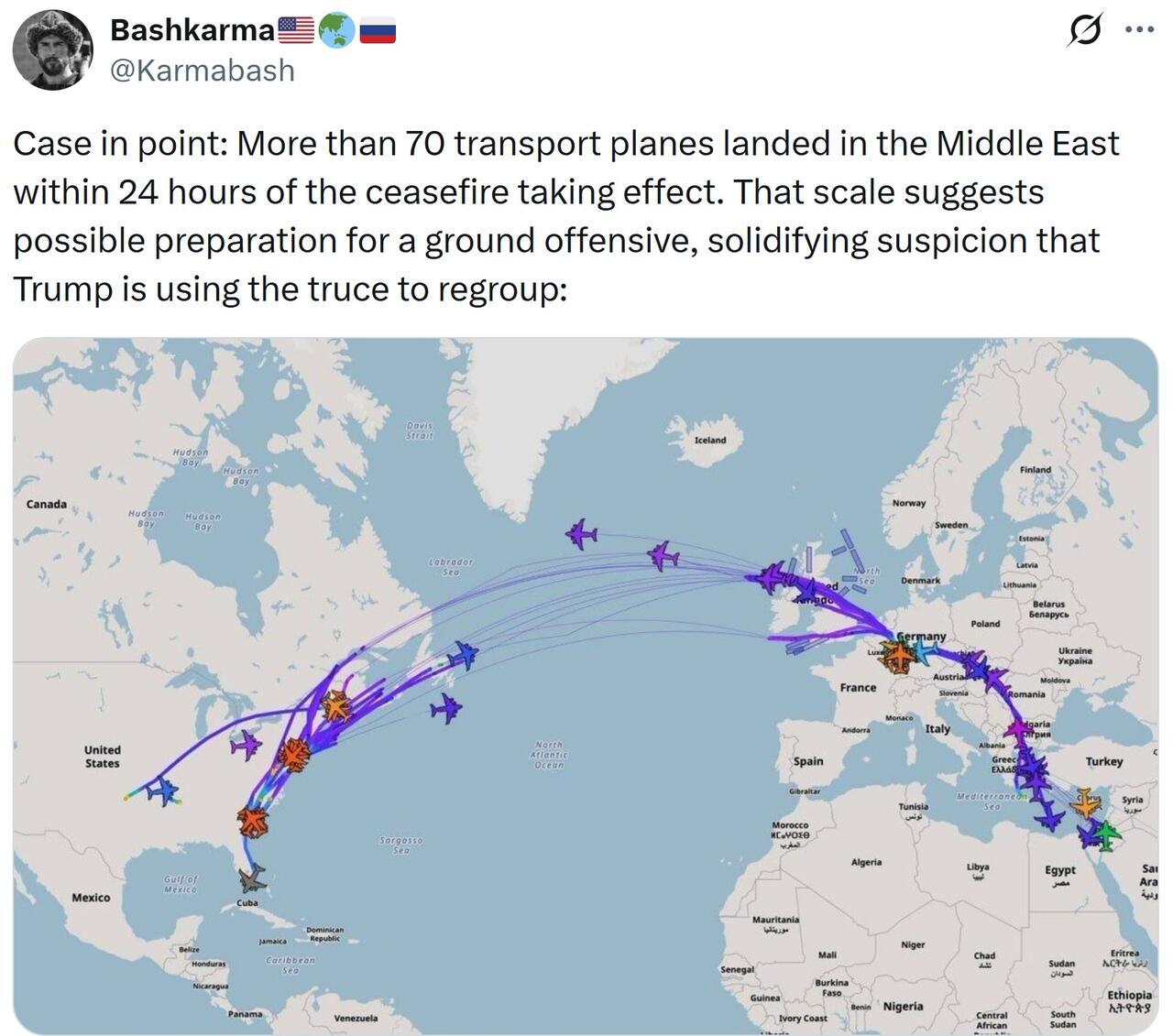Iran makes clear Lebanon fighting must end or else Pakistan talks "meaningless" - as its delegation arrives in 'locked down' Pakistan. Speculation abounds related to ongoing Pentagon transport flights into Mideast region.