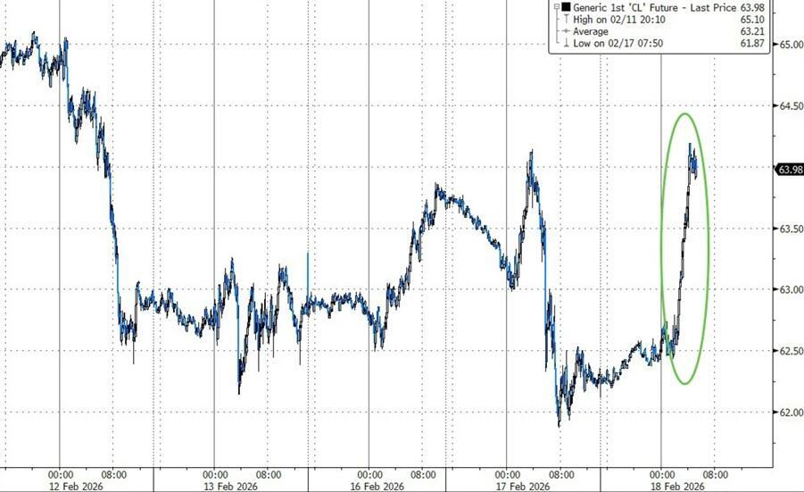 Oil reaches HOD Wednesday soon on heels of Axios report, with WTI kissing $64/barrel...