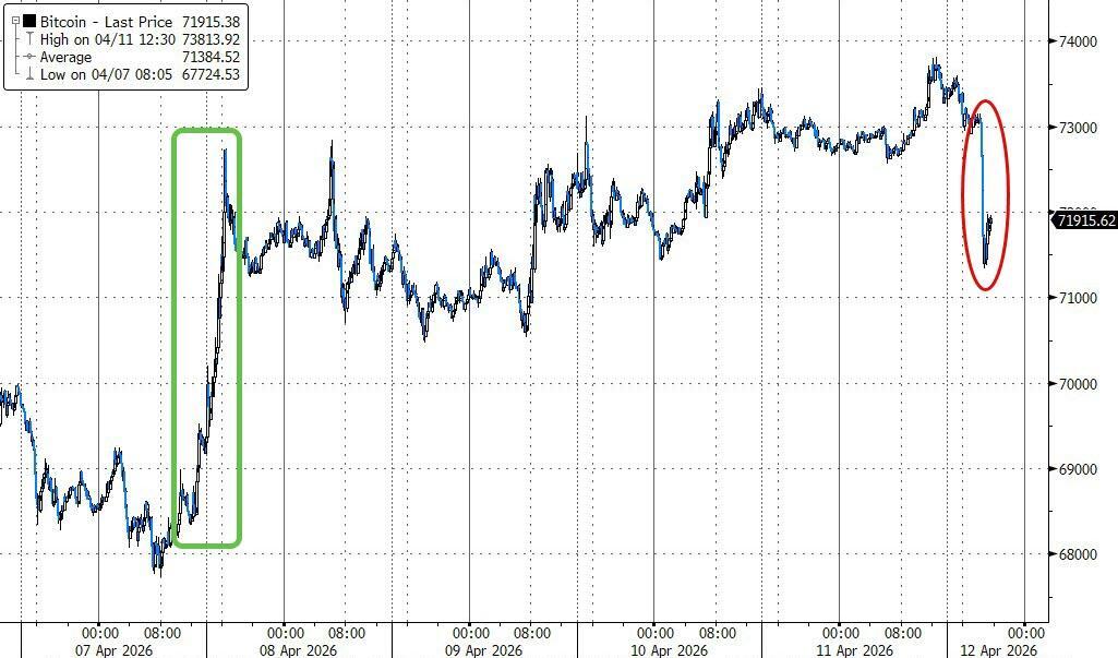 The only market showing any notable impact is crypto with BTC retracing some of the post-ceasefire gains...
