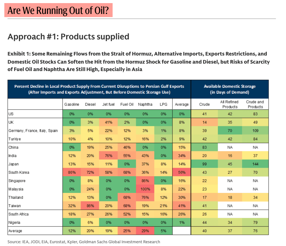In commodity markets, the ongoing energy shock, with crude and LNG facilities across the Gulf area disrupted and the Hormuz chokepoint still clogged, prompted Goldman analyst Yulia Zhestkova Grigsby to ask on Friday evening: "Are We Running Out Of Oil?"