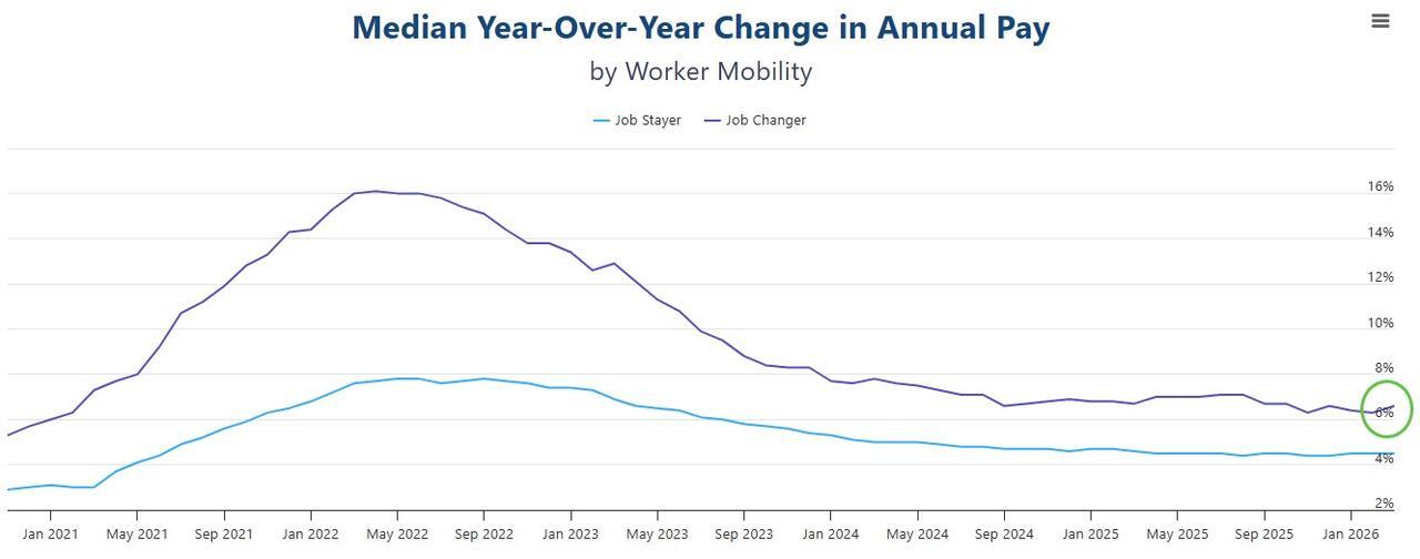 “In March, this solid performance was accompanied by a boost in pay gains for job-changers.”