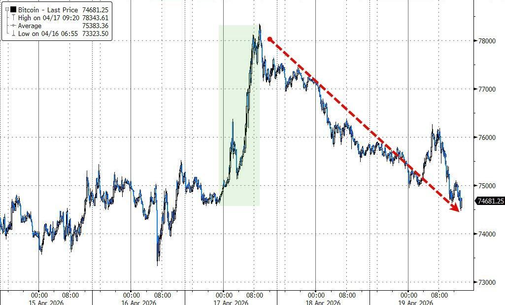 Bitcoin has erased all of Friday's gains...