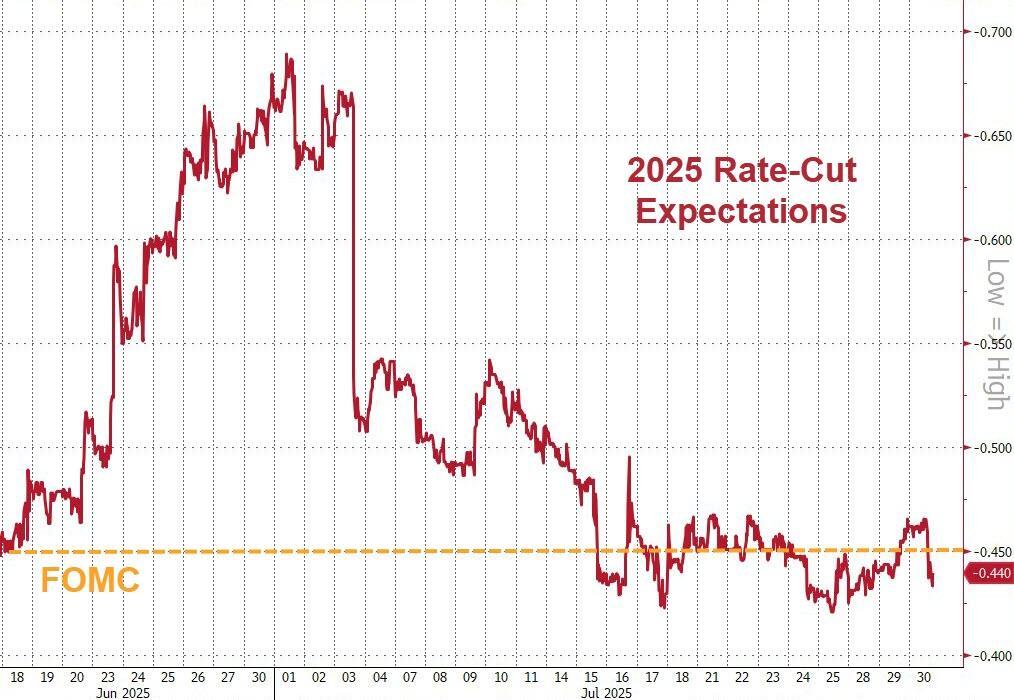 So, while expectations are for no rate-cut today, hints of future dovishness (in the statement as well as in Powell's presser) are a key focus as the potential for the first double-Governor-dissent since 1993 is on the cards...