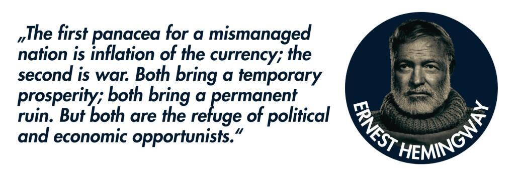 This has always meant “temporary prosperity followed by permanent ruin” created by a handful of “political and economic opportunists,” who, as Hemingway warned, take their nations toward currency destruction and war – the very scenario in which we now openly find ourselves.