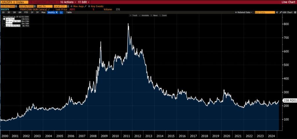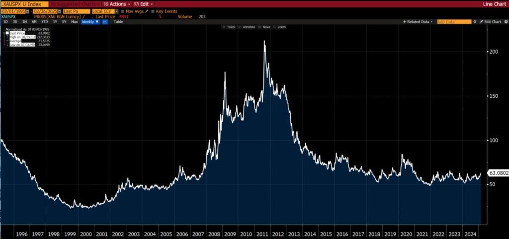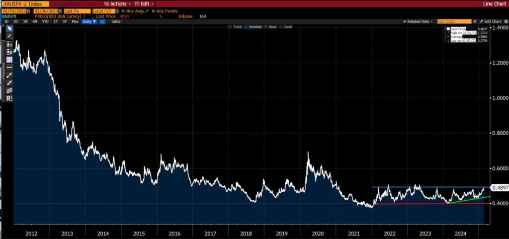 And how close gold relative to the S&P 500 is to breaking to a four-year high…