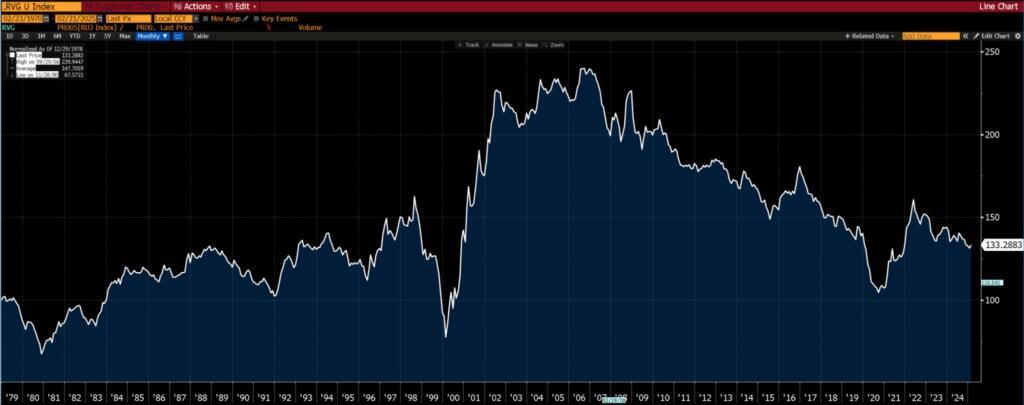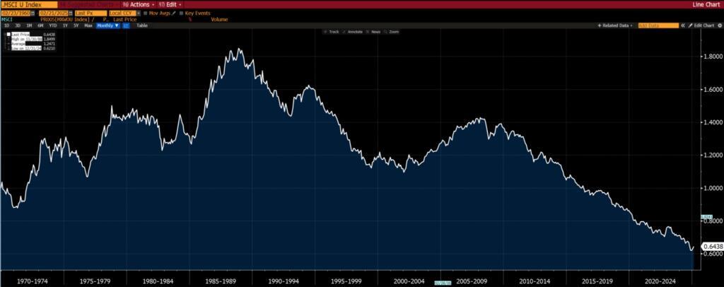 In the US, “value” as an investment theme relative to “growth” is more or less at a 40-year low.
