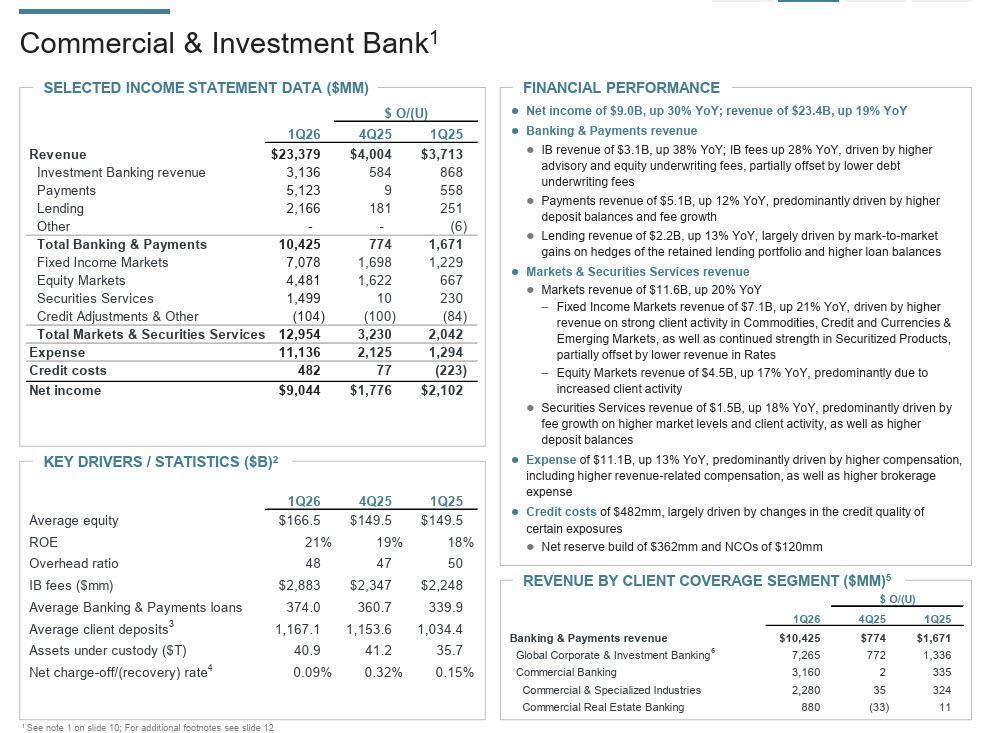 One day after Goldman Sachs reported its highest profit in 5 years (despite an ugly miss in FICC revenues), this morning JPMorgan impressed with just as solid results, when it reported that its Q1 profits rose 13% as the bank benefited from soaring market volatility and frantic trading amid the war with Iran and the US military operation in Venezuela.