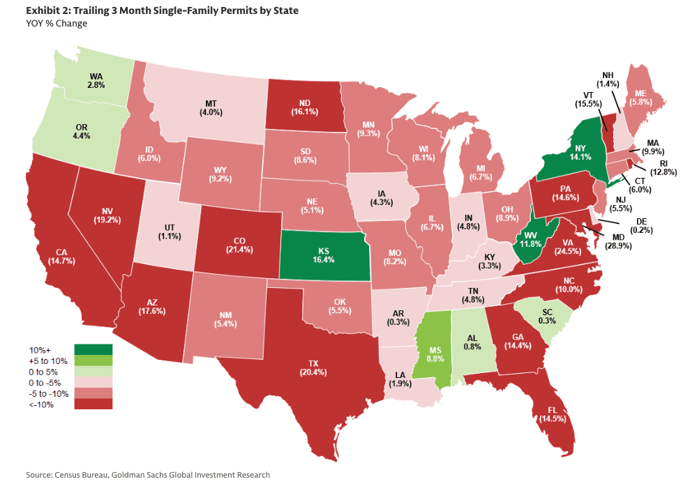 Goldman analysts, led by Susan Maklari, provided clients on Friday with a snapshot of homebuilders across America and a housing heat map suggesting continued sluggishness across the industry.