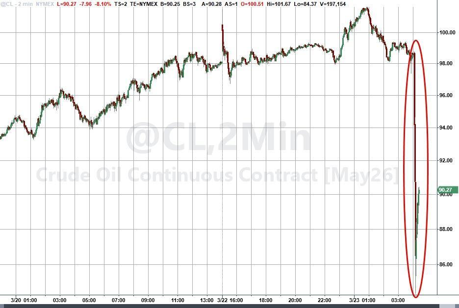 The reaction to Trump's statement - as you might expect - is a crash lower in crude...