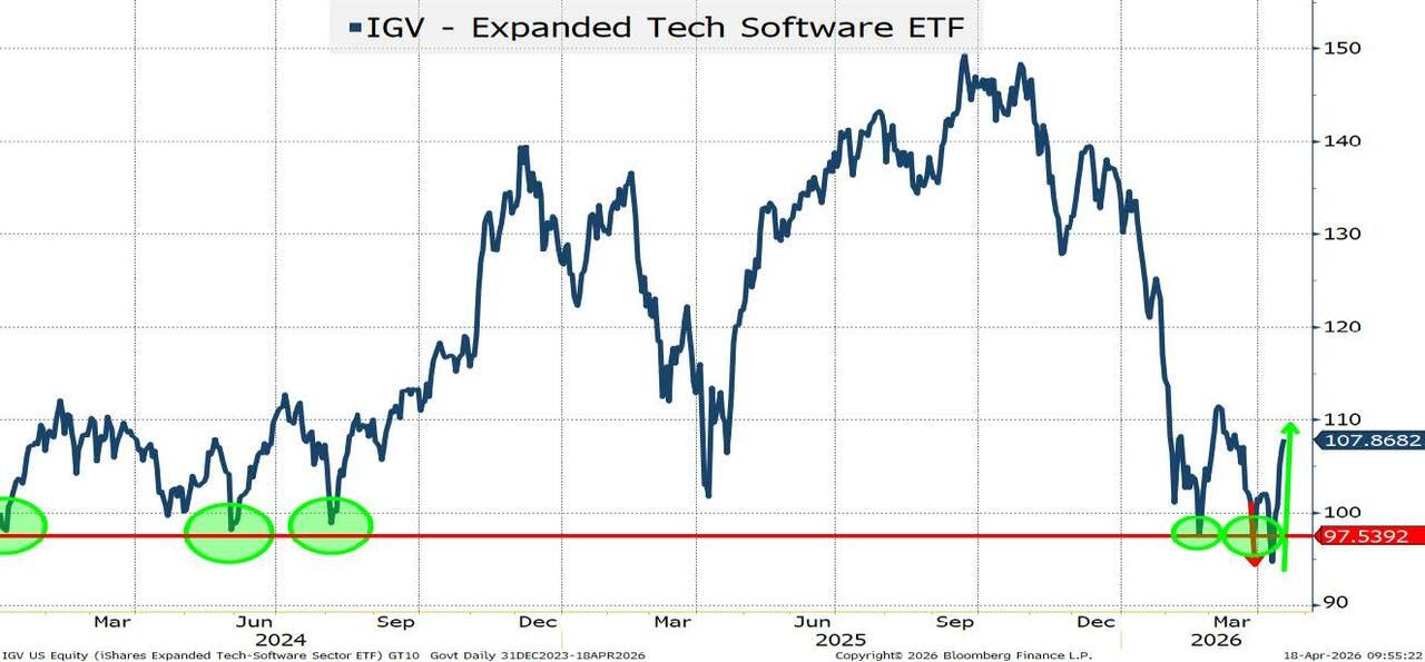 IGV (software ETF) rose 14% on the week. ARKK which I use as a “proxy” for disruption, also rallied by 15%. INTC (one of the few individual tickers I’ve been vocal about in reports and the media) said “hold my beer” as it rallied 35% in less than 2 weeks! QTUM (quantum ETF) was up 25% and didn’t sell off as much in the first place – which makes some sense as investment into this area is only increasing.