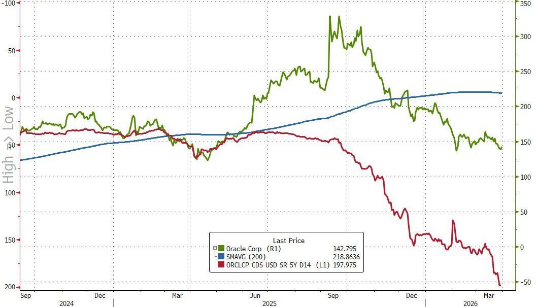 Two months ago, when ORCL announced it would raise $50 billion in a combination of stock and bonds to ease market fears about its soaring funding costs and lack of actual revenues and "to build additional capacity to meet the contracted demand from the company’s largest cloud customers, including Advanced Micro Devices, Meta Platforms, Nvidia, OpenAI, TikTok and xAI" we said that this latest example of financial engineering, which perhaps most importantly was meant to push its soaring Credit Default Swap lower, was doomed to fail.