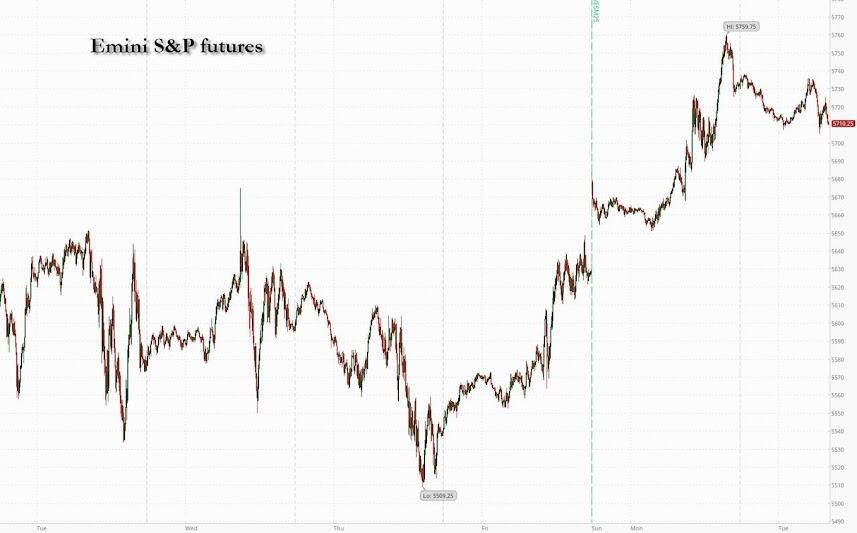And: As of 8:00am S&P futures are down 0.3%, losing ground after Bloomberg reported Russian President Vladimir Putin is demanding a suspension of all weapons deliveries to Ukraine...