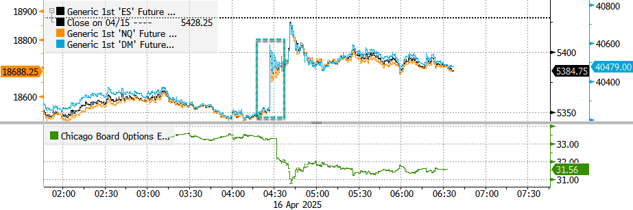 This sent the U.S. main equity index futures surging, trimming earlier losses from European and Asian sessions.