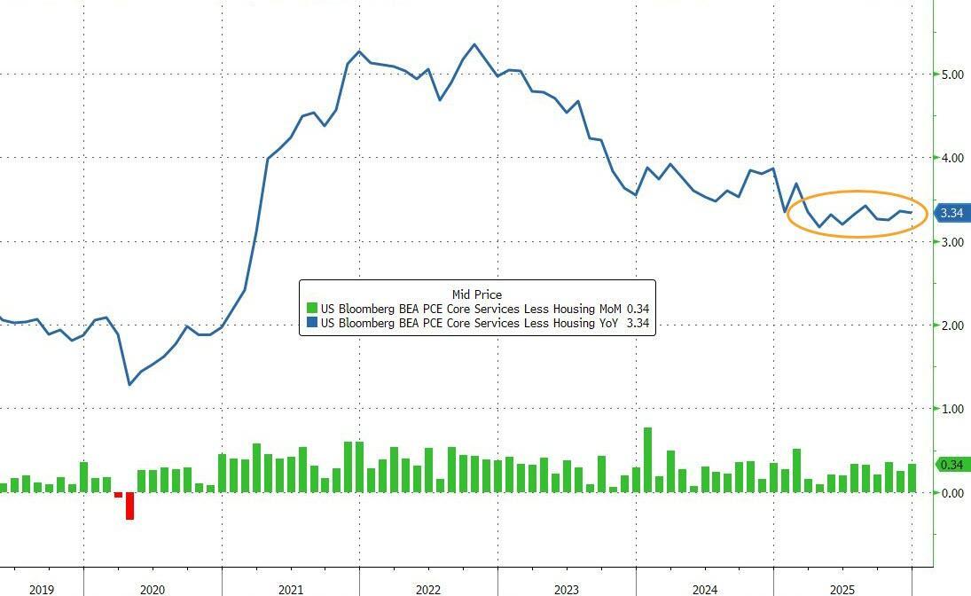 The headline PCE rose 0.4% MoM (more than expected too) driving prices up 2.9% YoY (the highest since March 2024)