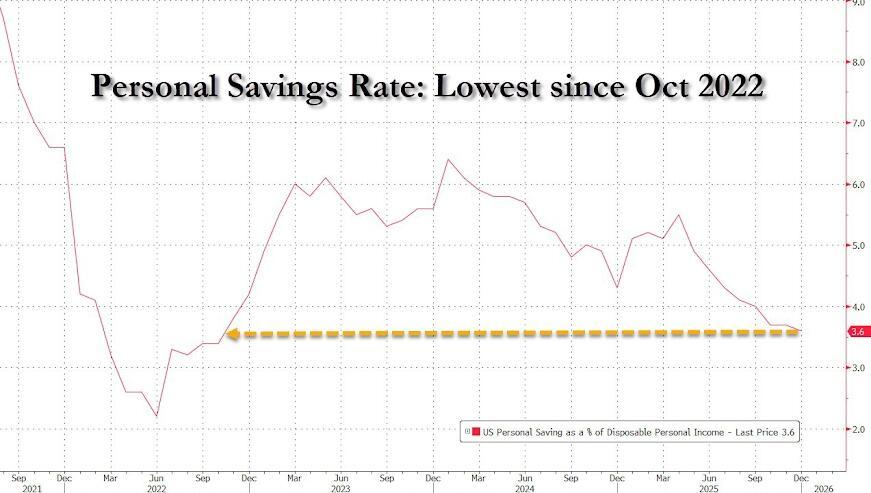 Savings Rate Tumbles To 4 Year Lows As Fed's Favorite Inflation Indicator Comes In Hot