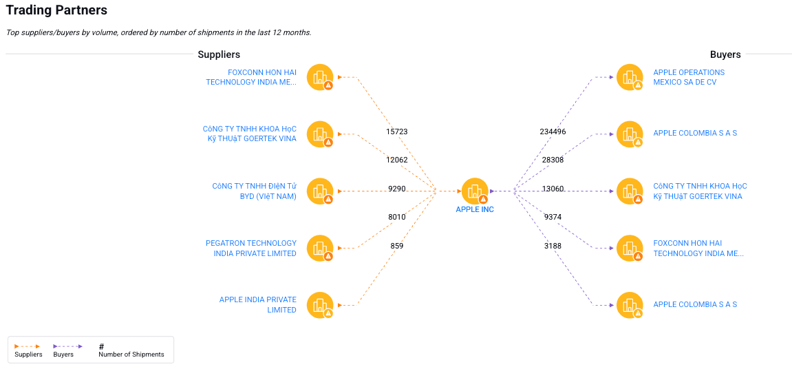 Trade data via the supply chain platform Sayari shows that Foxconn India is a major Apple supplier.