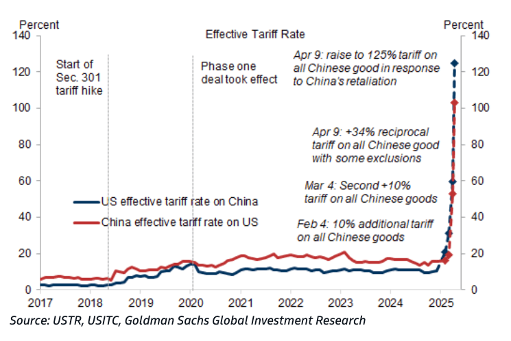 Goldman: President Trump increased the US effective tariff rate on Chinese goods to 125%