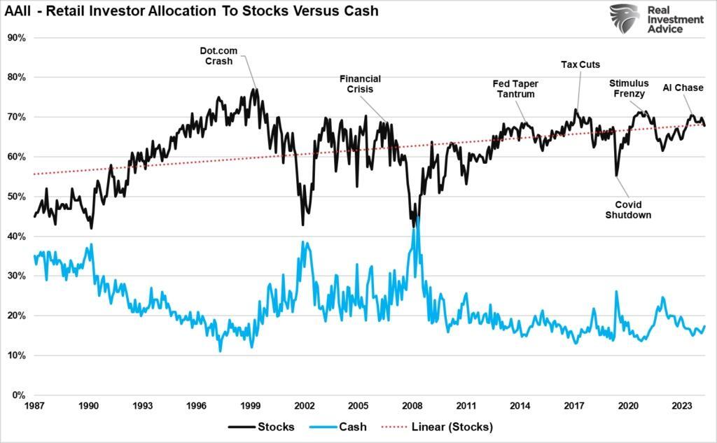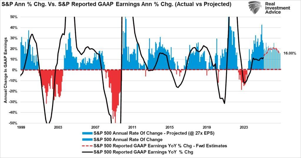 “Investors often get lost in the media headlines about rising recession risks, debts, deficits, or valuations. While those risks are important, they are terrible for predicting where markets will likely move next. Furthermore, if or when those risks become an issue, the market will begin to reprice for a reduction in forward earnings.“