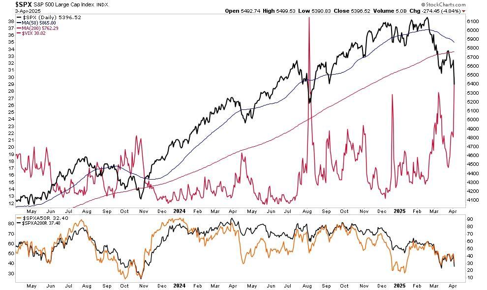 Several technical indicators warn that the current correction has the potential for something more. As shown, the market has broken below long-term moving averages, reduced market breadth (fewer stocks participating in rallies), and spikes in volatility (as measured by the VIX) often appear before recessions. Those conditions have been met technically, but the economic data does not confirm them —at least not yet.