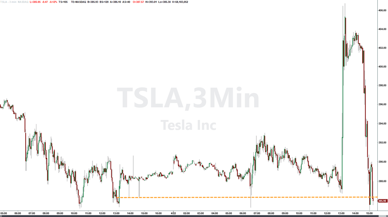 So yeah: while Tesla hit all the right notes with its earnings report, the call was a mess, because as Bloomberg's Kit Carlson writes, "spending has been a huge concern for many investors and analysts, even ahead of this new increase" and sure enough, TSLA stock tumbled after hours, sliding from a session high of $406 to $377 before stabilizing around $383, erasing all after hours gains and then some.