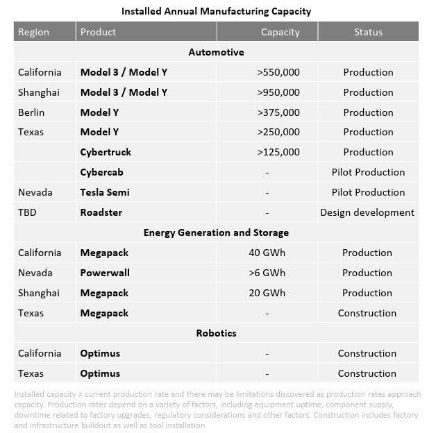 - Volume: "We are focused on maximum capacity utilization at our factories. Deliveries and deployments will be impacted by aggregate demand for our products, supply chain readiness and allocation decisions between sale to customers or use for our owned and operated fleet."