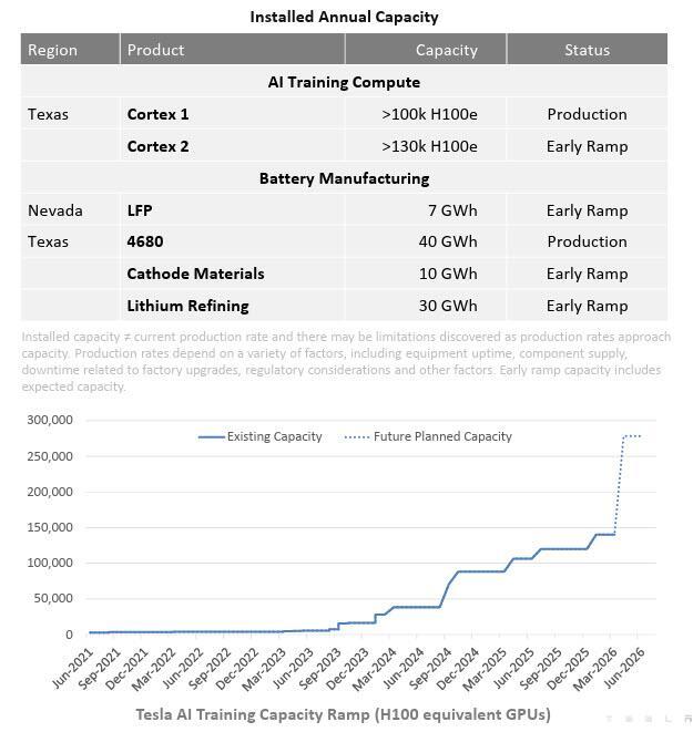In the battery business, "ramp has begun across our new battery and material factories, including LFP cells in Nevada, cathode material and lithium refining in Texas." Battery pack capacity continues to be the limiting factor on ramping our vehicle production the company said.