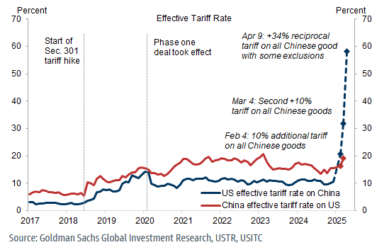 In line with the Churchillian tone I had struck, yesterday’s US tariffs were historic and suggest a world-wide battle. It remains to be seen in what form, with what outcome, but global bifurcation is again on the cards. The US raised its weighted-average tariff to 29%, the highest in over 100 years, and above the Smoot-Hawley tariffs of the 1930s. That’s staggering, not just for the US, or inflation or GDP, but for the global system built on the US as consumer of last resort for everyone else’s overproduction and the US dollar as the lubricant for that trade and the US financial assets everyone accumulates as a result.