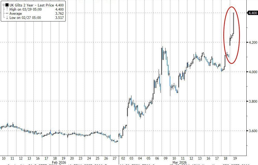 For context, that is highest 2Y Yield since Jan 2025 with yields up a stunning 90bps since the war began!