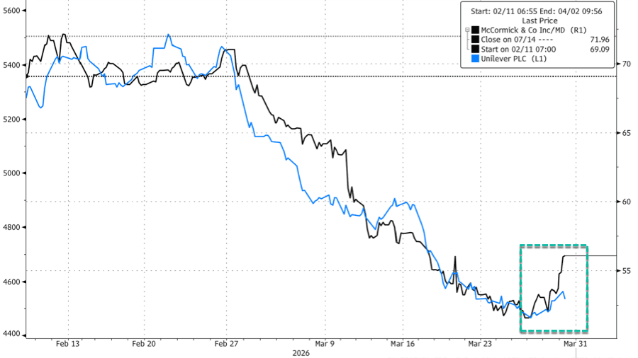In addition to the Unilever-McCormick proposed deal that could soon be finalized, there were reports that the Anglo-Dutch consumer goods company will freeze hiring worldwide because of price shocks stemming from the US-Iran conflict.