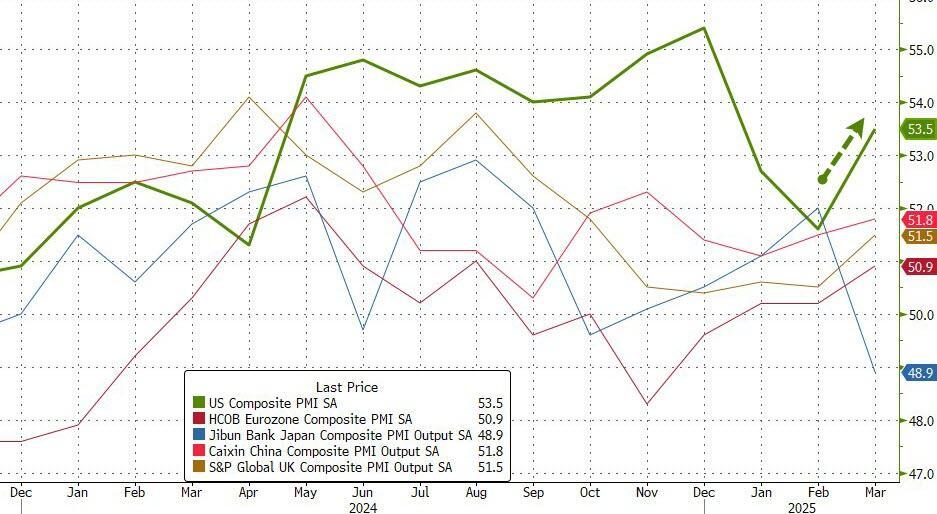 S&P Global's US Services PMI jumped from 15 month lows at 51.0 to 54.4 in March
