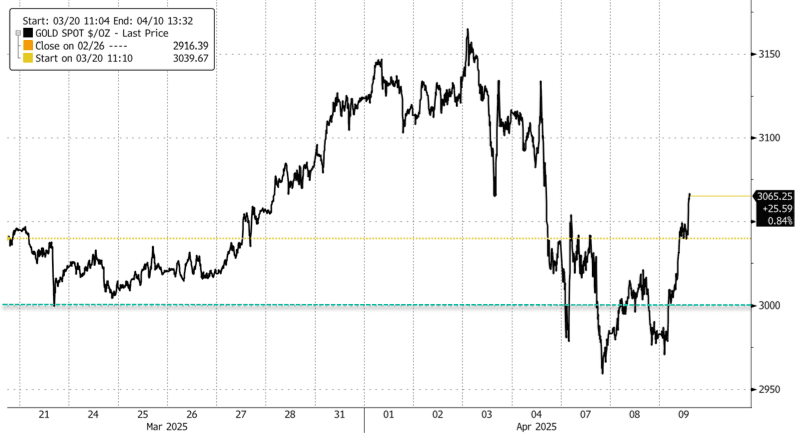 Spot gold prices climbed back above $3,000 an ounce on Wednesday morning after breaking above the key psychological threshold in mid-March. The surge comes amid escalating tariff wars and rising recession risks, fueling demand not only for gold bars as a safe haven—but also for gold Rolexes on the secondary market.