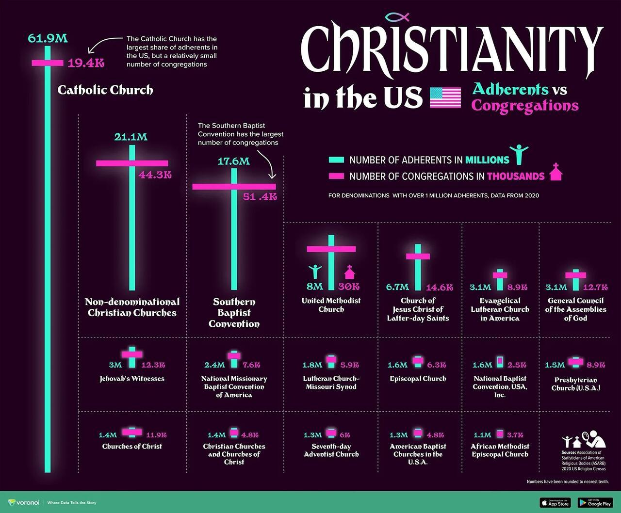 To see how Christianity compares on a global scale, check out Ranked: Countries With the Greatest Number of Christians on the Voronoi app.