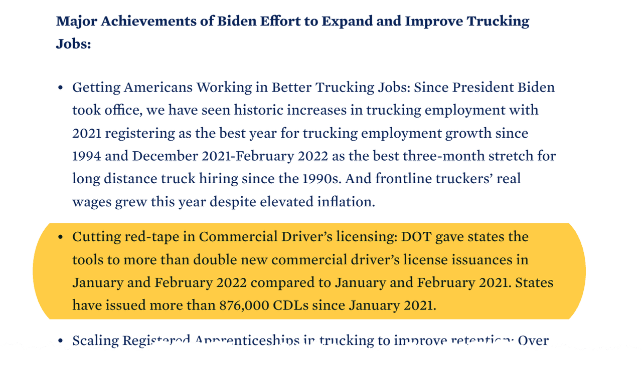In 2022, the Biden administration bragged about bringing 876,000 new drivers into the market, effectively doubling the average annual output of new drivers.