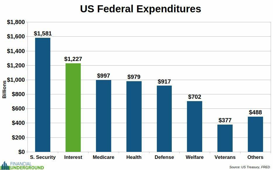 Today’s higher debt load and accompanying interest expense are why meaningfully higher interest rates are not on the table; the growing interest expense could lead to the US government’s bankruptcy.