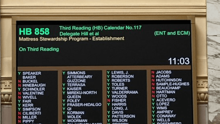 A small but vocal group of conservative Republicans in the Maryland House of Delegates were stunned on Friday when far-left Democrats pushed through HB 858—a bill that establishes a mattress stewardship program under the guise of promoting safe disposal and recycling. This is another tax on Marylanders as the state sinks into financial turmoil and elevated credit downgrade risks. The new 6% tax on mattresses is on top of the existing 6% sales tax.