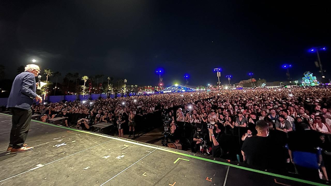 NEW: Senator Bernie Sanders shows up to Coachella in California to rant about President Trump in front of tens of thousands of people.