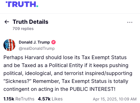 Trump Threatens Harvard's Tax-Exempt Status Amid Federal Funding Freeze