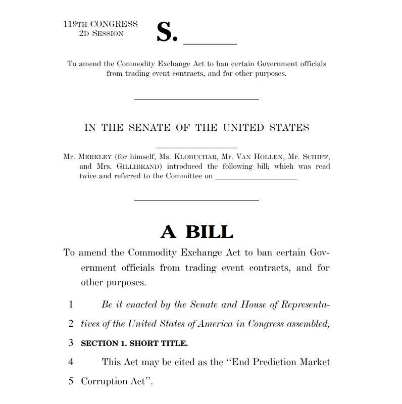 End Prediction Market Corruption Act. Source: Merkley.senate.gov