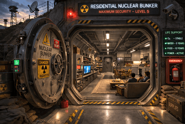 These bunkers boast hardened steel construction, armoured blast doors, air purification systems, and luxuries like cinemas, pools, and gun ranges—designed to withstand drone strikes or worse.